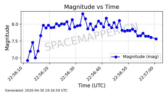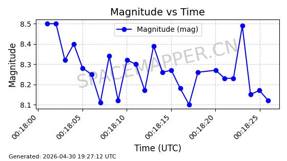 在轨 96分钟 97.5540 548.622 550.388 0.0001274 2026-04-30