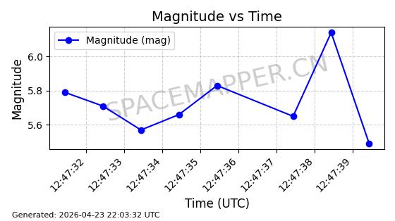 | STARLINK-4461 | 53503 | 53503 | 2022-08-12 同日期轨道 2022-099AQ 同批次轨道 | 已陨落 | 88分钟 | 97.6231 | 148.981 | 161.737 | 0.0009762 | 2026-04-04 06:20:56 | ||