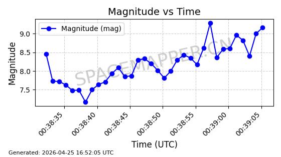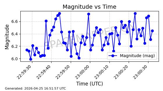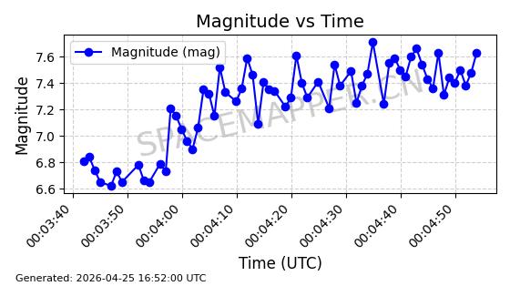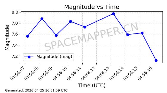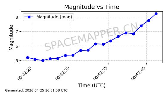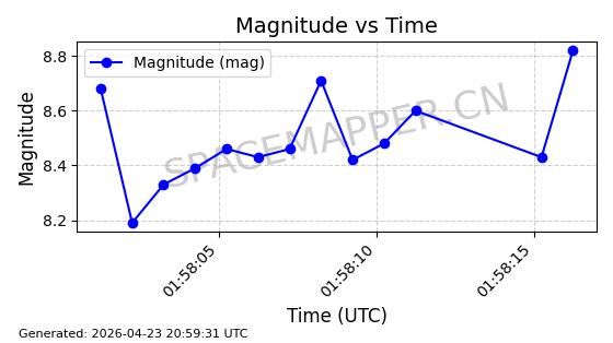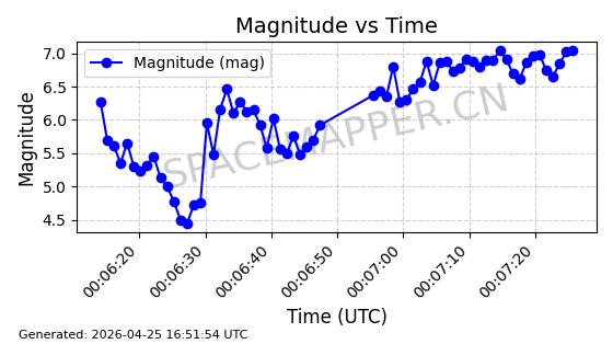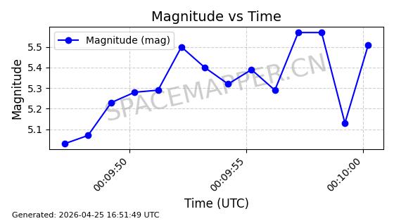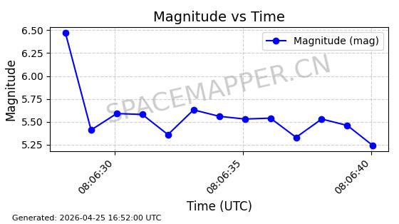 | STARLINK-4578 | 53965 | 53965 | 2022-10-05 同日期轨道 2022-125B 同批次轨道 | 已陨落 | 88分钟 | 53.2095 | 150.446 | 160.816 | 0.0007935 | 2026-04-16 01:34:38 | ||