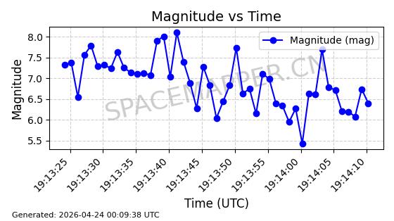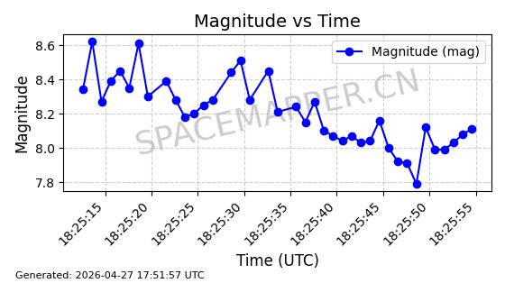 | STARLINK-4541 | 53427 | 53427 | 2022-08-10 同日期轨道 2022-097AR 同批次轨道 | 已陨落 | 88分钟 | 53.2065 | 182.356 | 192.478 | 0.0007707 | 2025-03-13 18:34:49 | ![]() | |