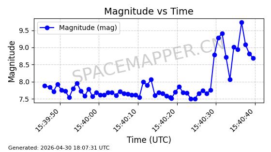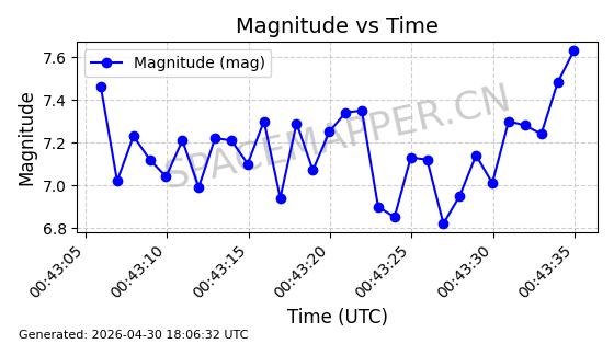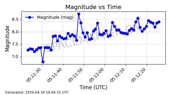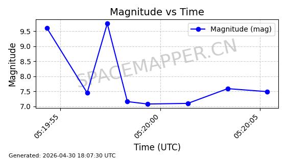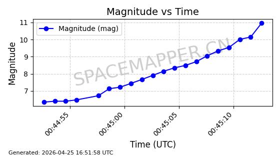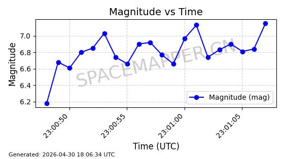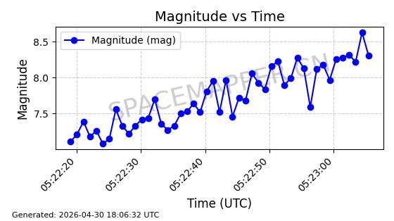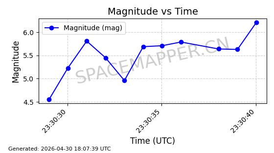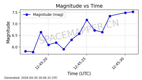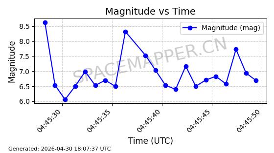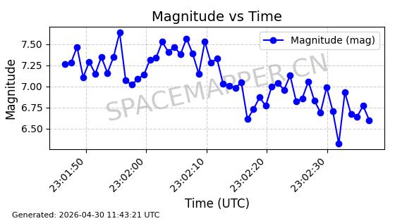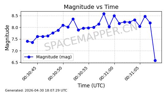 | STARLINK-4500 | 53413 | 53413 | 2022-08-10 同日期轨道 2022-097AB 同批次轨道 | 在轨 | 95分钟 | 53.2181 | 538.837 | 540.653 | 0.0001312 | 2026-04-30 01:00:29 | ||