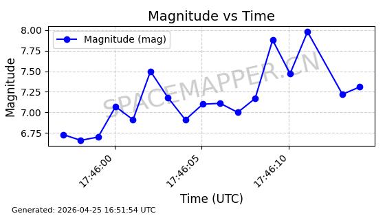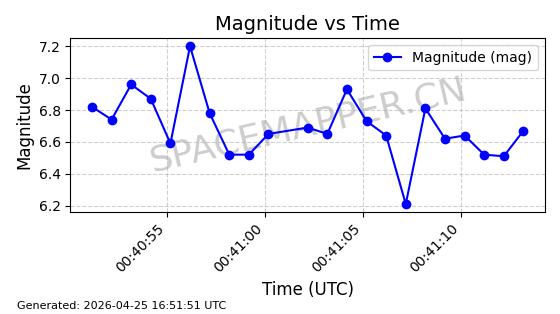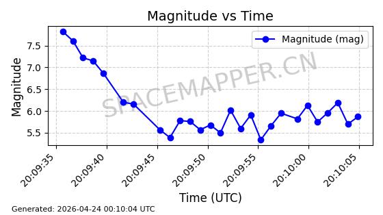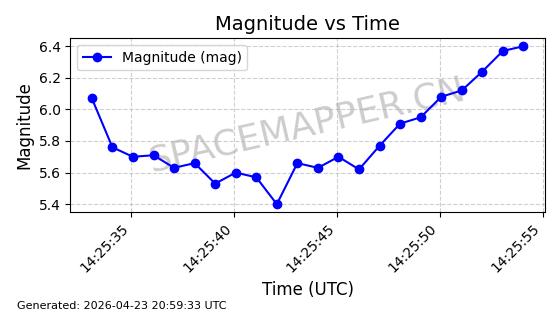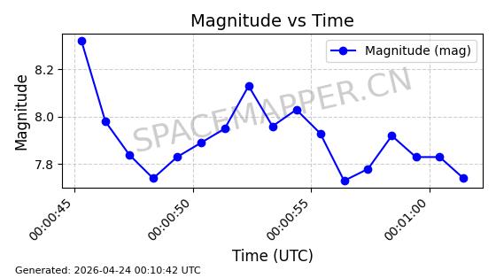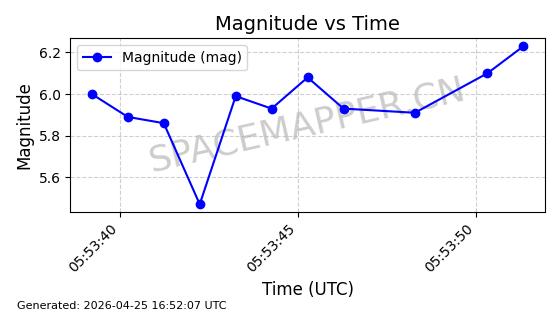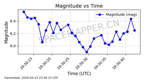 | STARLINK-4485 | 53541 | 53541 | 2022-08-19 同日期轨道 2022-101Q 同批次轨道 | 在轨 | 95分钟 | 53.2174 | 538.625 | 540.807 | 0.0001576 | 2026-04-30 04:27:09 | ||