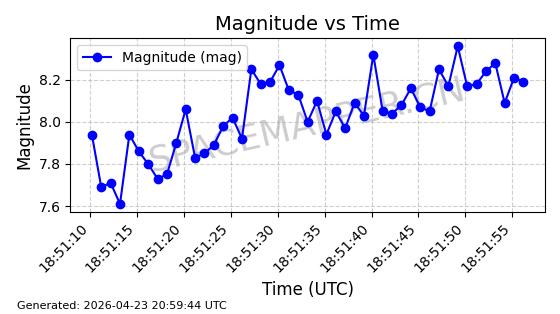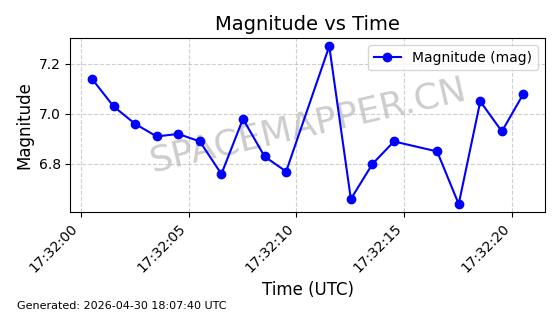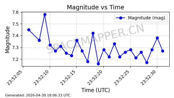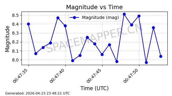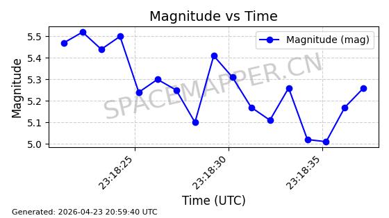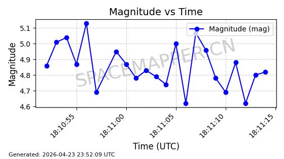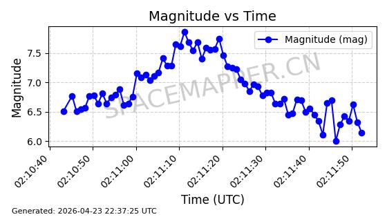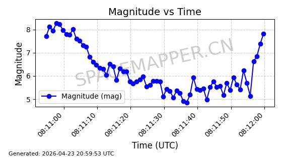 | STARLINK-4483 | 53532 | 53532 | 2022-08-19 同日期轨道 2022-101F 同批次轨道 | 在轨 | 95分钟 | 53.2172 | 539.13 | 540.37 | 0.0000896 | 2026-04-30 04:53:39 | ||