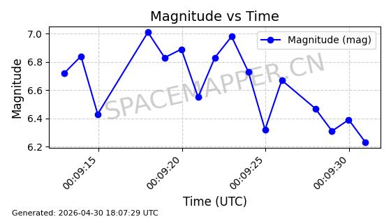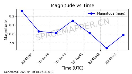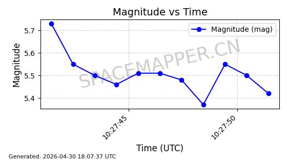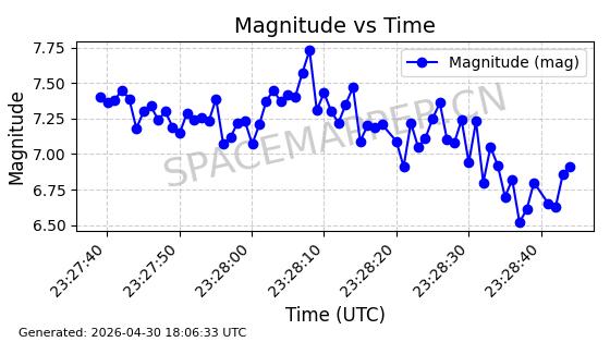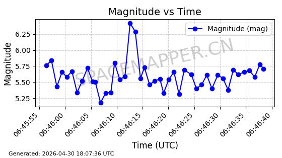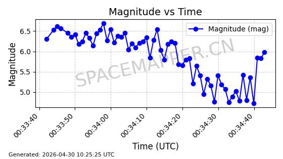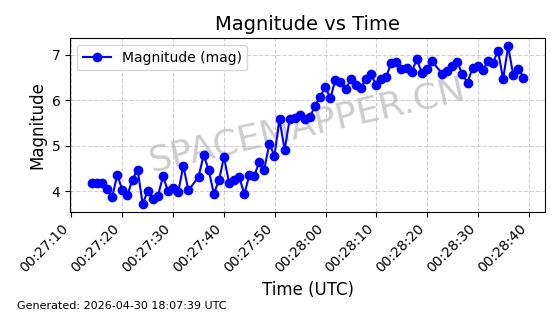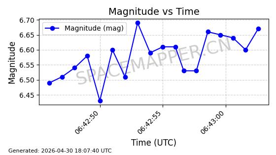 | STARLINK-4481 | 53418 | 53418 | 2022-08-10 同日期轨道 2022-097AG 同批次轨道 | 在轨 | 95分钟 | 53.2174 | 538.849 | 540.611 | 0.0001273 | 2026-04-30 01:12:19 | ||