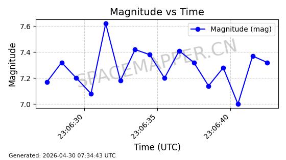 | STARLINK-4498 | 53434 | 53434 | 2022-08-10 同日期轨道 2022-097AY 同批次轨道 | 在轨 | 93分钟 | 53.2172 | 404.753 | 405.521 | 0.0000566 | 2026-04-30 04:00:01 | ||