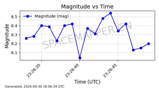 | 卫星名称 | AOE ID | NORAD ID | 发射日期 国际编号 | 在轨状态 | 轨道周期 | 轨道倾角 (度) | 近地点 (Km) | 远地点 (Km) | 偏心率 | 更新时间 (UTC) | 近期光变曲线 | 服务 |
