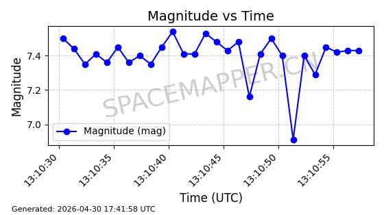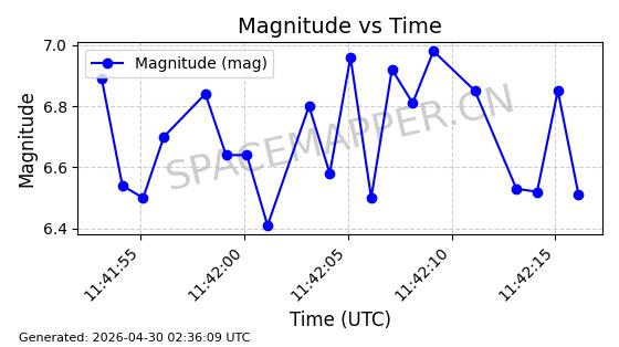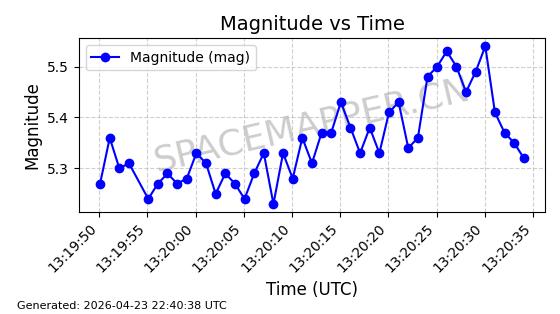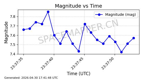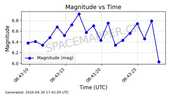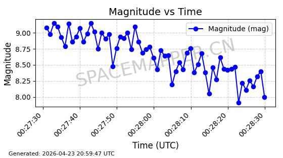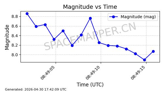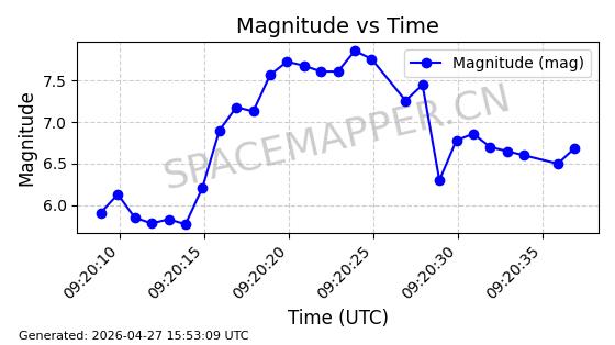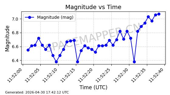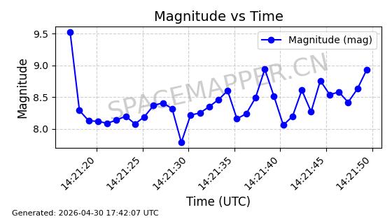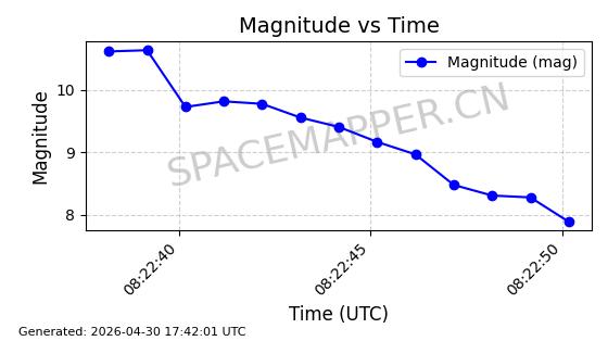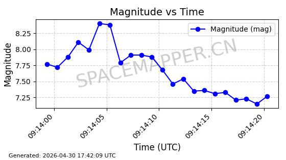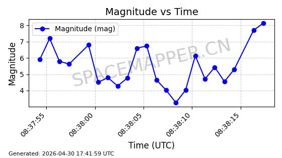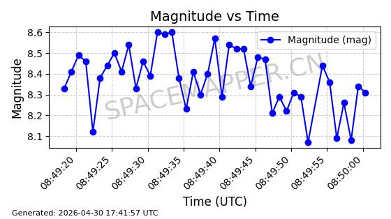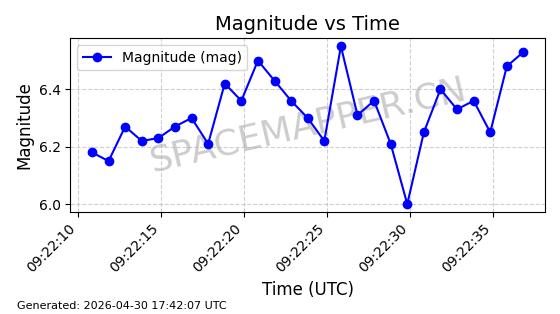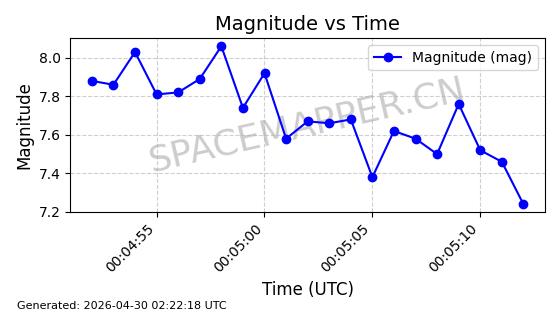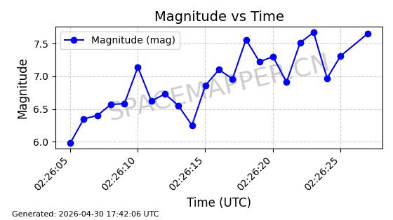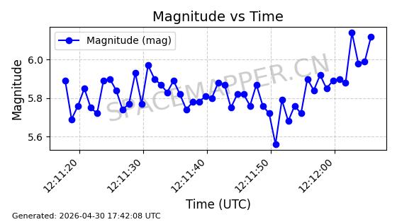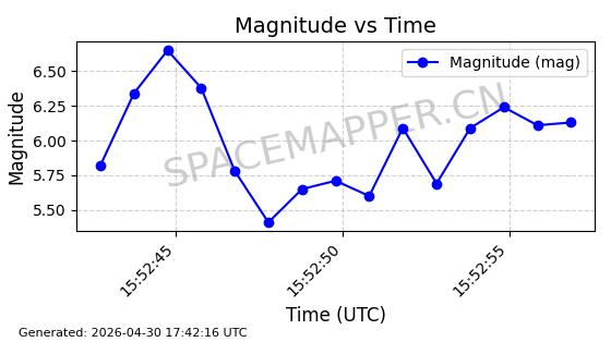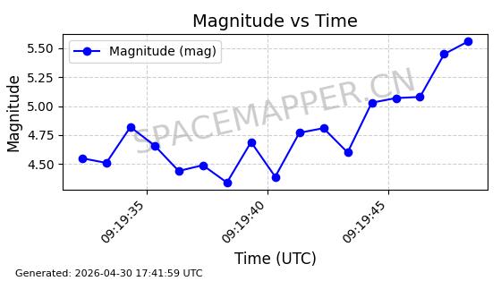 在轨 95分钟 53.2146 539.269 540.191 0.0000666 2026-04-30
