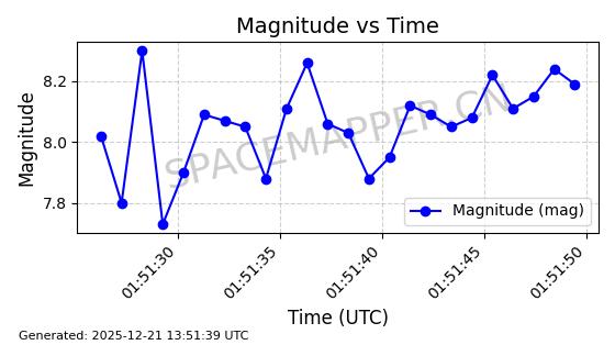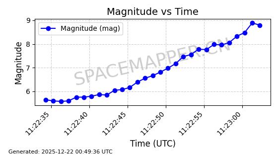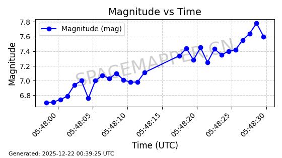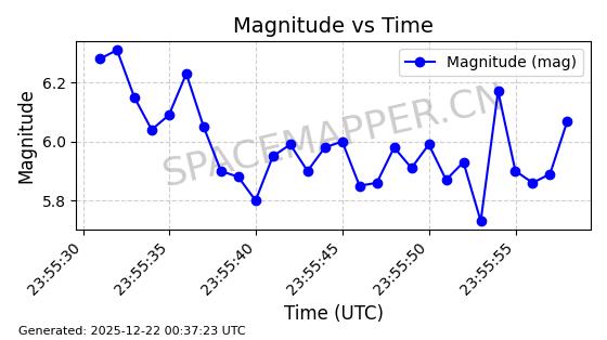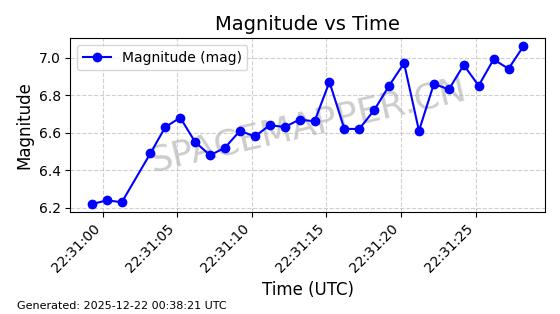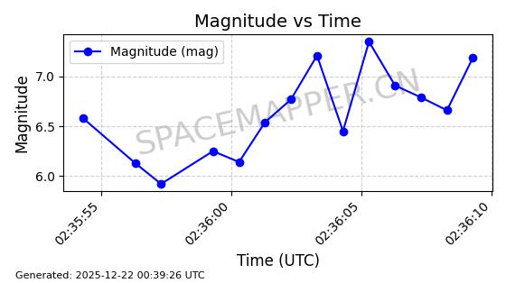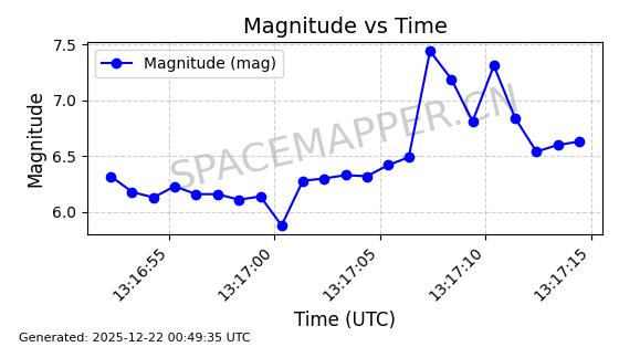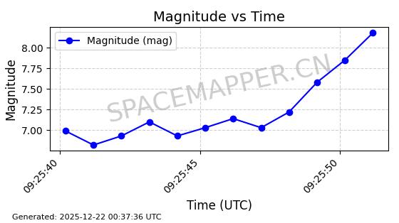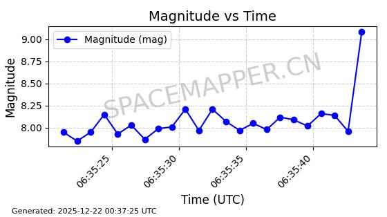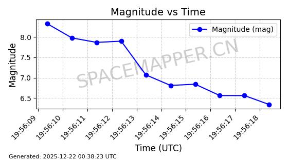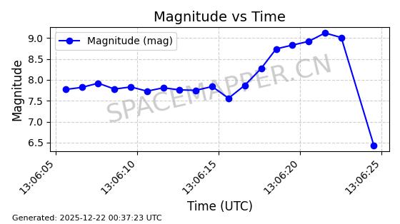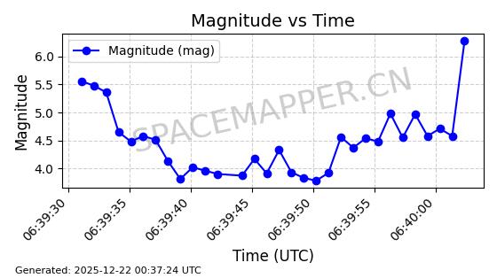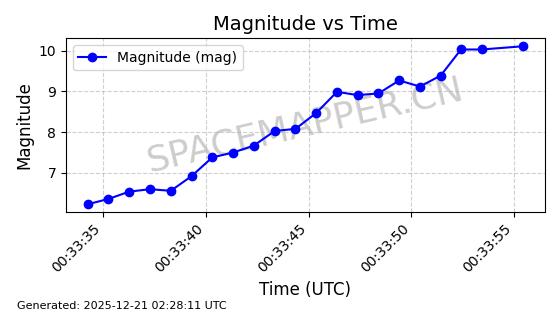 | STARLINK-4801 | 54825 | 54825 | 2022-12-28 同日期轨道 2022-177F 同批次轨道 | 已陨落 | 88分钟 | 42.9871 | 196.528 | 202.182 | 0.0004297 | 2025-10-01 20:34:52 | ||