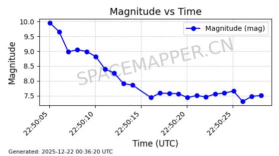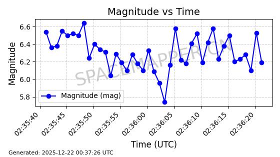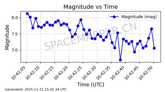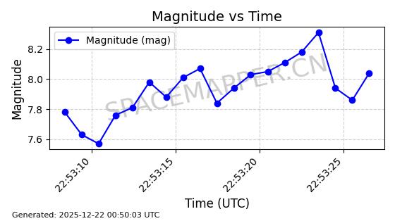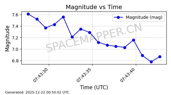 | STARLINK-4742 | 53795 | 53795 | 2022-09-11 同日期轨道 2022-111Y 同批次轨道 | 在轨 | 95分钟 | 53.2180 | 538.771 | 540.793 | 0.0001460 | 2025-12-20 00:32:49 | ||