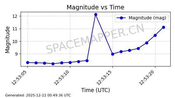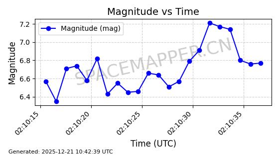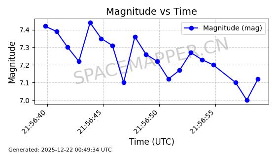 | STARLINK-4730 | 53794 | 53794 | 2022-09-11 同日期轨道 2022-111X 同批次轨道 | 在轨 | 95分钟 | 53.2180 | 538.747 | 540.771 | 0.0001462 | 2025-12-20 00:55:25 | ||