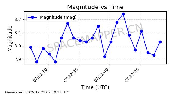 | STARLINK-4720 | 53800 | 53800 | 2022-09-11 同日期轨道 2022-111AD 同批次轨道 | 在轨 | 94分钟 | 53.2113 | 467.975 | 470.163 | 0.0001597 | 2025-12-20 06:00:03 | ||