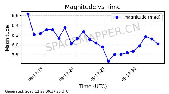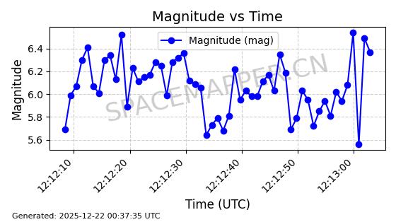 | STARLINK-4725 | 53700 | 53700 | 2022-09-05 同日期轨道 2022-107A 同批次轨道 | 在轨 | 95分钟 | 53.2170 | 538.656 | 540.808 | 0.0001555 | 2025-12-20 02:22:46 | ||