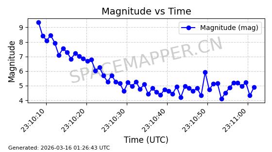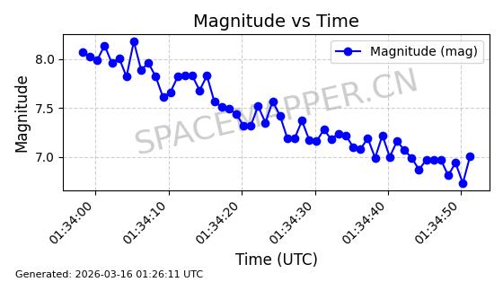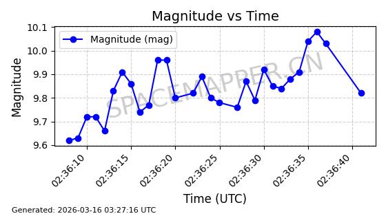 | STARLINK-31011 | 58517 | 58517 | 2023-12-07 同日期轨道 2023-191K 同批次轨道 | 在轨 | 94分钟 | 43.0016 | 482.39 | 483.664 | 0.0000928 | 2026-03-15 07:09:13 | ||