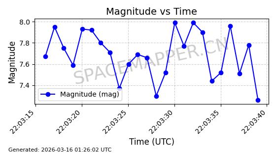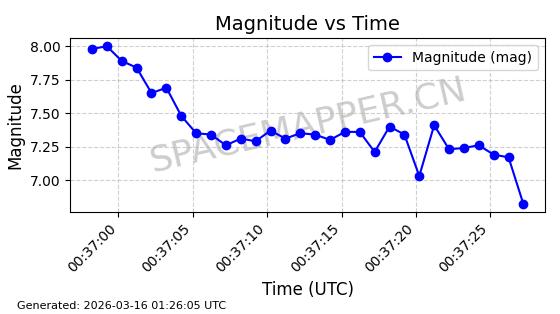 | 卫星名称 | AOE ID | NORAD ID | 发射日期 国际编号 | 在轨状态 | 轨道周期 | 轨道倾角 (度) | 近地点 (Km) | 远地点 (Km) | 偏心率 | 更新时间 (UTC) | 近期光变曲线 | 服务 |