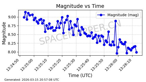 | STARLINK-31057 | 58545 | 58545 | 2023-12-08 同日期轨道 2023-192Q 同批次轨道 | 在轨 | 94分钟 | 53.1610 | 474.617 | 475.945 | 0.0000968 | 2026-03-15 04:24:58 | ||