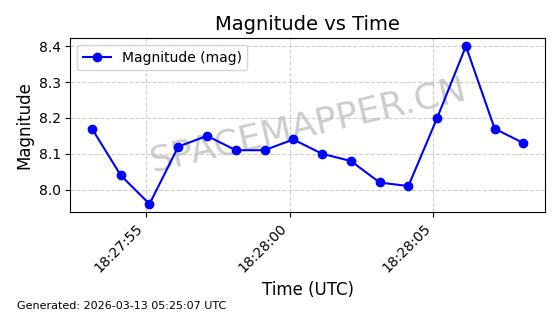 | STARLINK-31104 | 58672 | 58672 | 2023-12-29 同日期轨道 2023-211F 同批次轨道 | 在轨 | 94分钟 | 42.9979 | 463.225 | 472.577 | 0.0006830 | 2026-03-15 06:45:38 | ||
