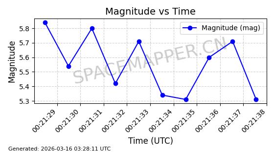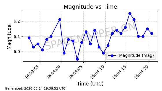 | STARLINK-31052 | 58600 | 58600 | 2023-12-19 同日期轨道 2023-200M 同批次轨道 | 在轨 | 94分钟 | 43.0036 | 484.543 | 486.627 | 0.0001518 | 2026-03-14 13:57:16 | ||