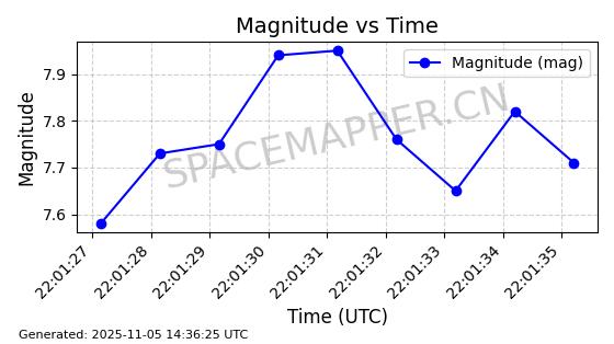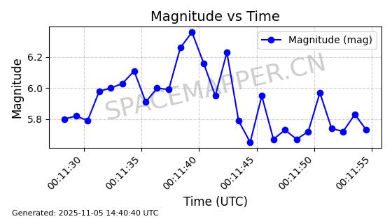 | STARLINK-5419 | 54854 | 54854 | 2022-12-28 同日期轨道 2022-177AL 同批次轨道 | 已陨落 | 88分钟 | 42.9928 | 154.297 | 166.335 | 0.0009205 | 2025-07-05 21:32:22 | ||