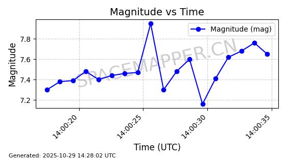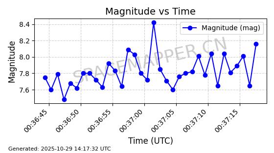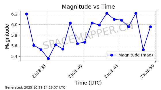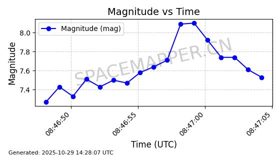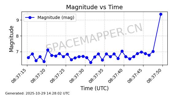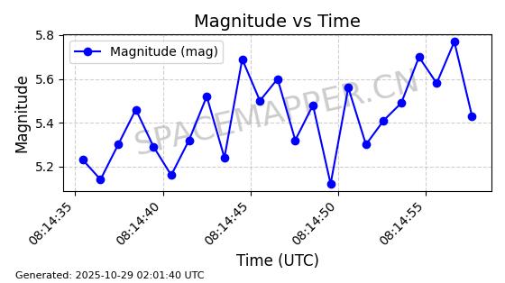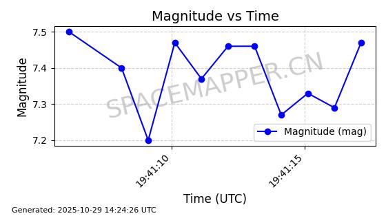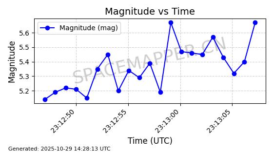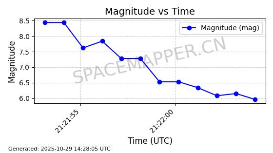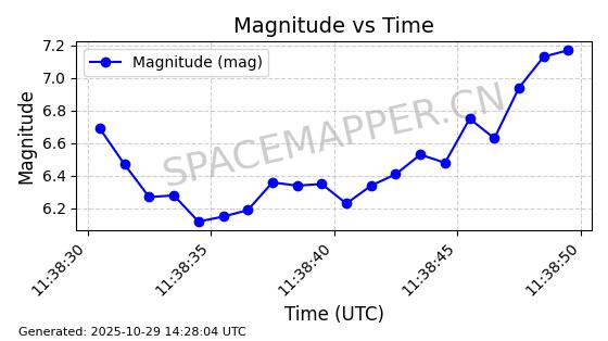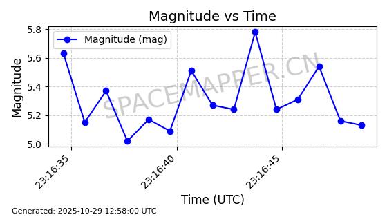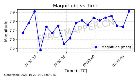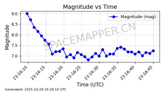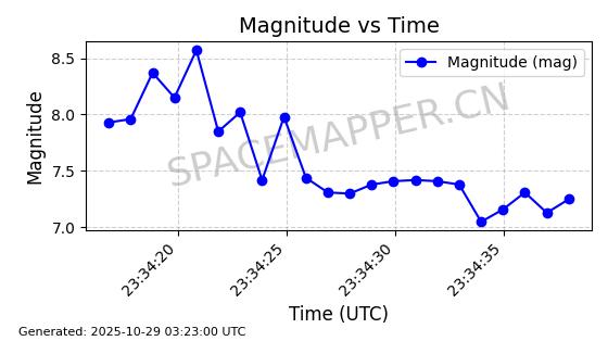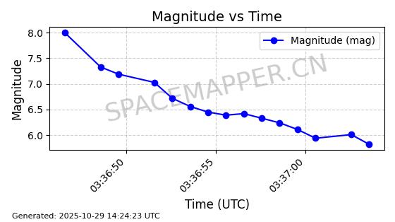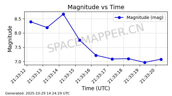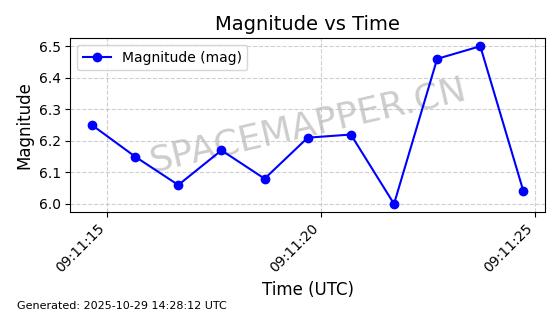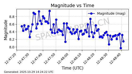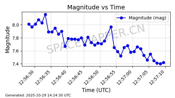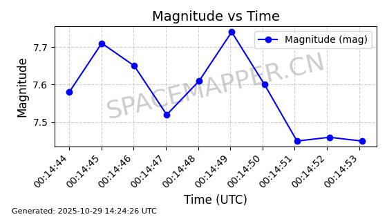 | STARLINK-1449 | 45666 | 45666 | 2020-06-04 同日期轨道 2020-035K 同批次轨道 | 已陨落 | 87分钟 | 53.0110 | 145.29 | 151.54 | 0.0004788 | 2025-05-07 19:13:57 | ||