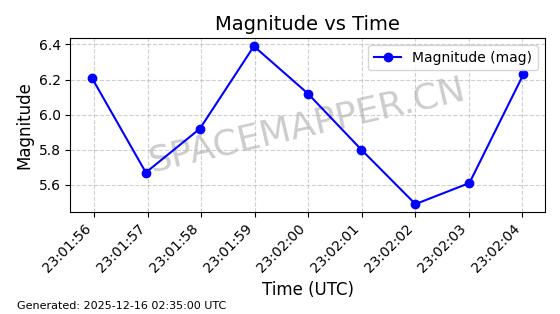 | STARLINK-1393 | 45678 | 45678 | 2020-06-04 同日期轨道 2020-035X 同批次轨道 | 已陨落 | 87分钟 | 53.0245 | 141.463 | 151.955 | 0.0008039 | 2025-03-07 01:00:21 | ||