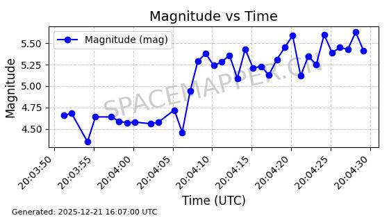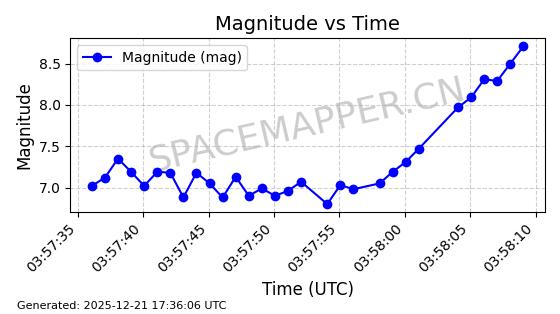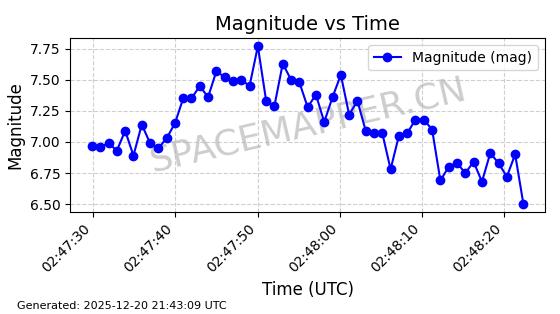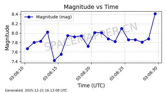 | STARLINK-5810 | 55776 | 55776 | 2023-03-03 同日期轨道 2023-028AM 同批次轨道 | 已陨落 | 87分钟 | 69.9800 | 132.008 | 141.254 | 0.0007096 | 2025-12-01 10:36:41 | ||