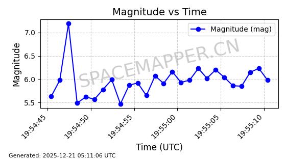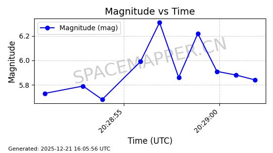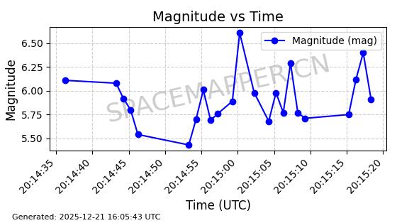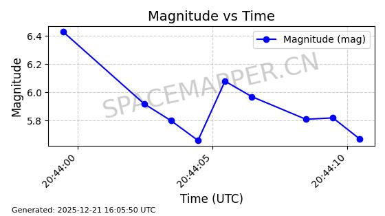 | STARLINK-5841 | 56493 | 56493 | 2023-05-10 同日期轨道 2023-064AX 同批次轨道 | 在轨 | 96分钟 | 69.9989 | 570.119 | 573.989 | 0.0002783 | 2025-12-20 02:27:23 | ||