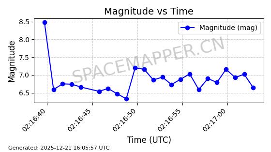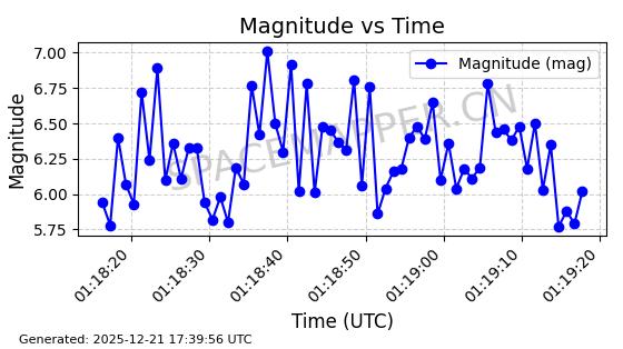 | STARLINK-5832 | 57063 | 57063 | 2023-06-22 同日期轨道 2023-088R 同批次轨道 | 在轨 | 96分钟 | 43.0021 | 558.207 | 560.059 | 0.0001334 | 2025-12-19 20:24:19 | ||