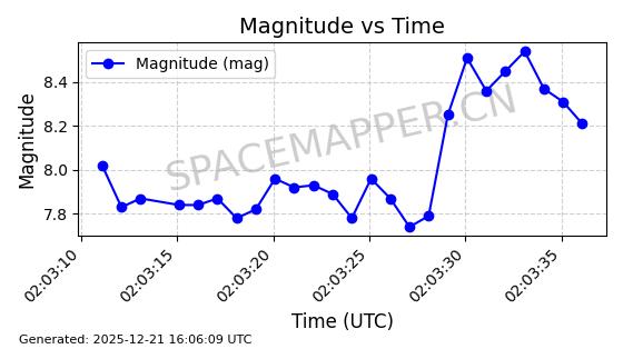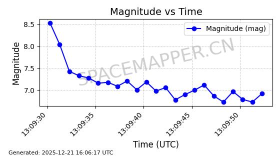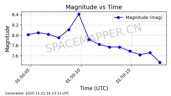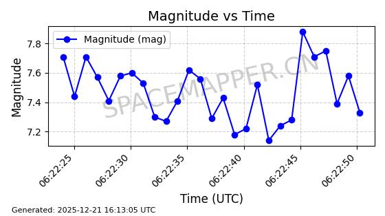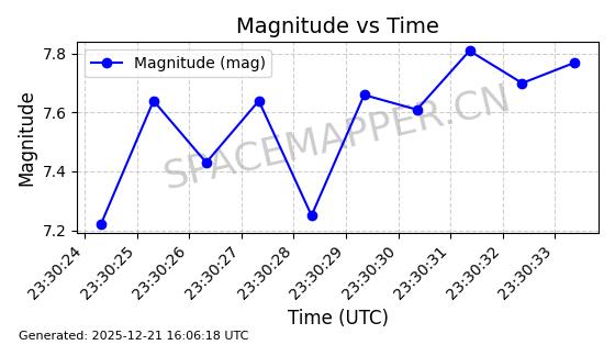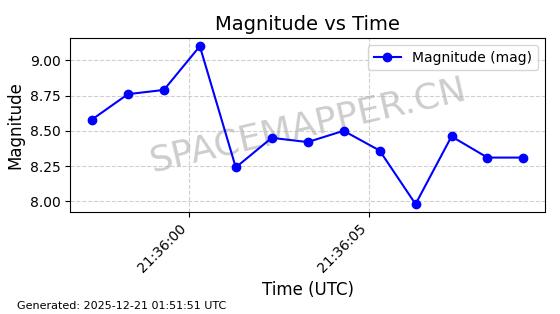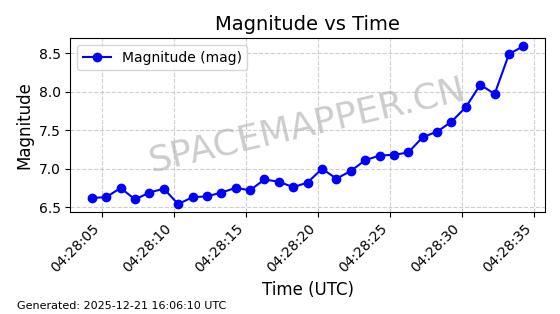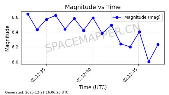 | STARLINK-5847 | 57048 | 57048 | 2023-06-22 同日期轨道 2023-088A 同批次轨道 | 已陨落 | 88分钟 | 42.9811 | 147.993 | 158.023 | 0.0007678 | 2025-02-26 18:24:13 | ![]() | |