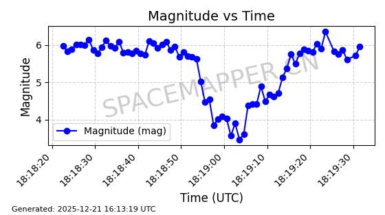 | STARLINK-5891 | 56351 | 56351 | 2023-04-27 同日期轨道 2023-058AL 同批次轨道 | 在轨 | 96分钟 | 97.6037 | 547.984 | 551.076 | 0.0002231 | 2025-12-19 23:51:39 | ||