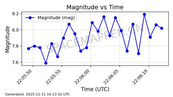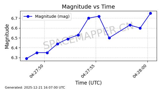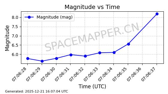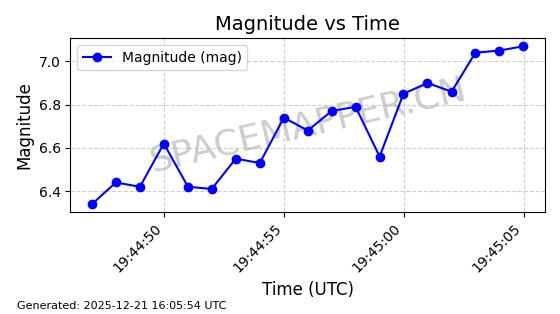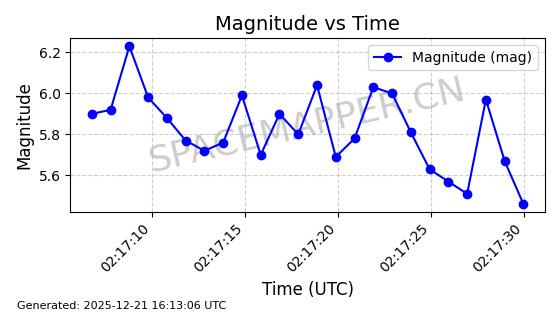 | STARLINK-5892 | 55954 | 55954 | 2023-03-17 同日期轨道 2023-037AS 同批次轨道 | 在轨 | 96分钟 | 69.9999 | 569.859 | 574.265 | 0.0003169 | 2025-12-19 10:29:02 | ||