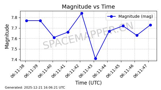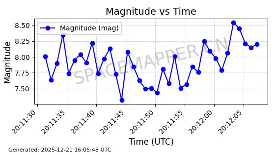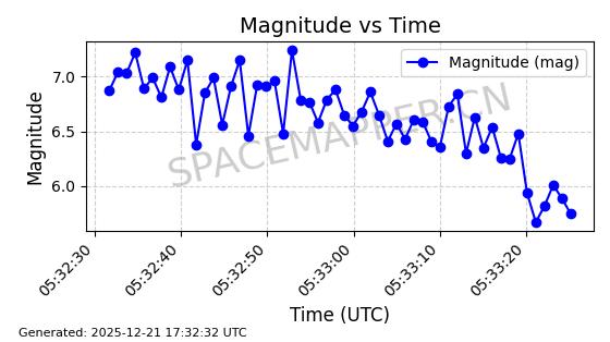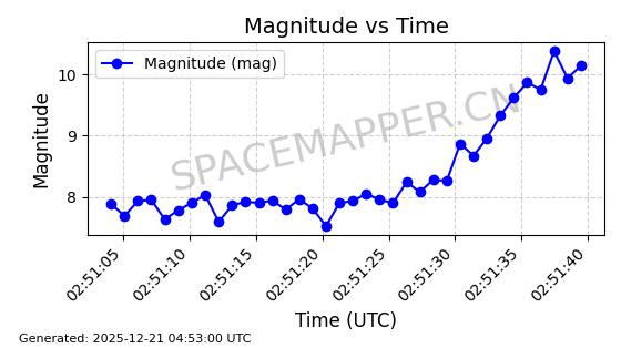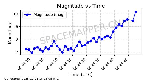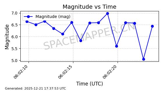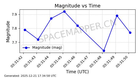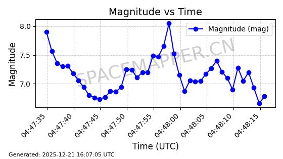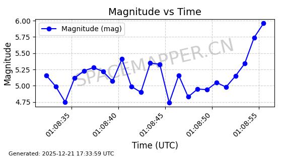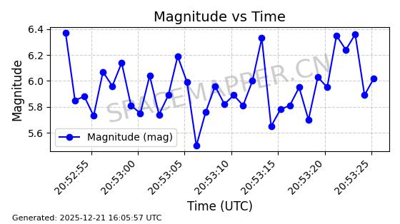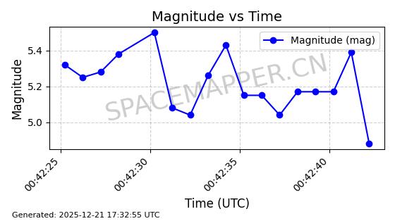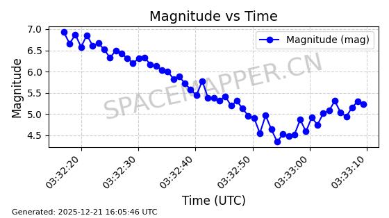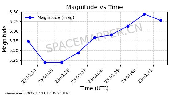 | STARLINK-5889 | 55953 | 55953 | 2023-03-17 同日期轨道 2023-037AR 同批次轨道 | 已陨落 | 87分钟 | 69.9806 | 135.446 | 147.666 | 0.0009371 | 2025-05-31 06:02:27 | ||