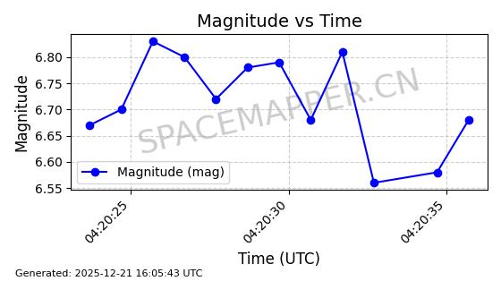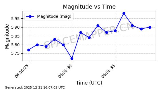 | STARLINK-5868 | 56483 | 56483 | 2023-05-10 同日期轨道 2023-064AM 同批次轨道 | 在轨 | 96分钟 | 69.9998 | 570.115 | 574.091 | 0.0002859 | 2025-12-19 23:57:51 | ||
