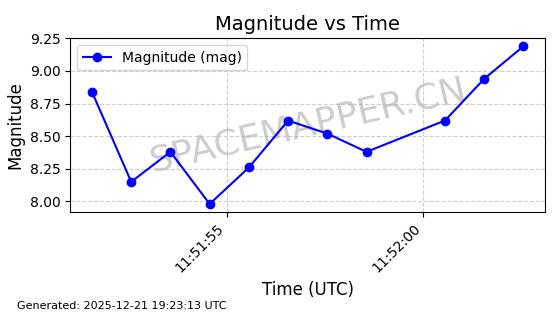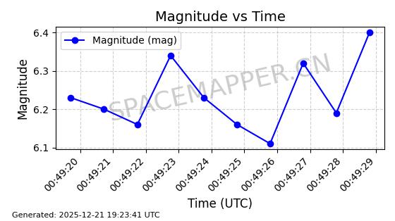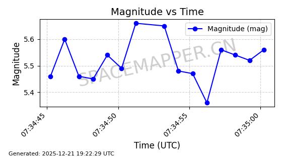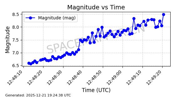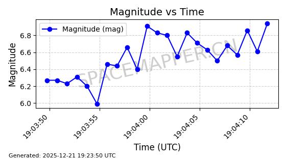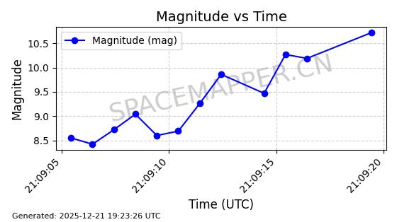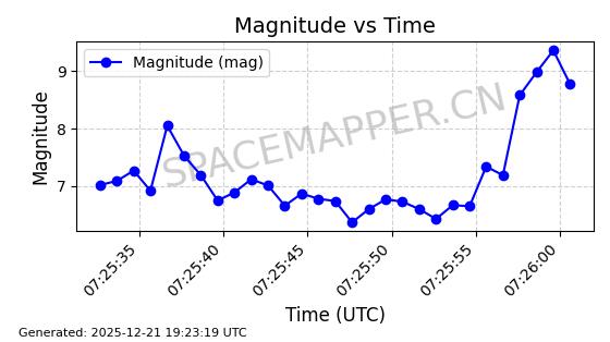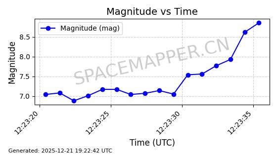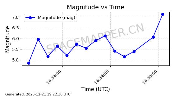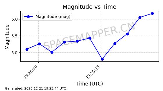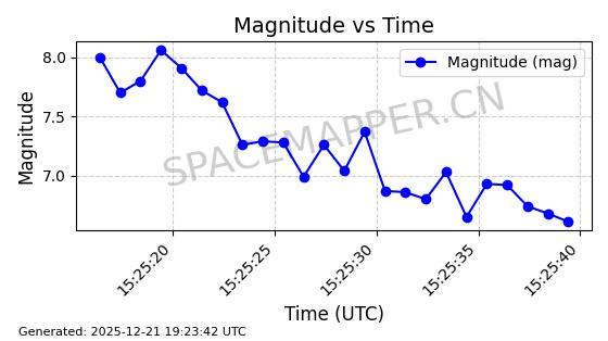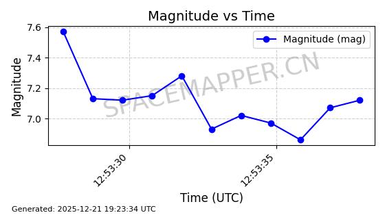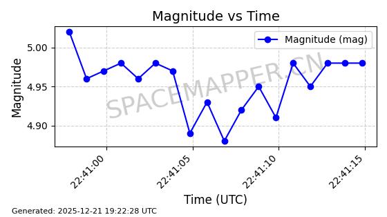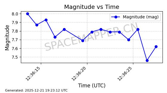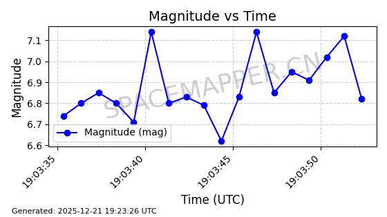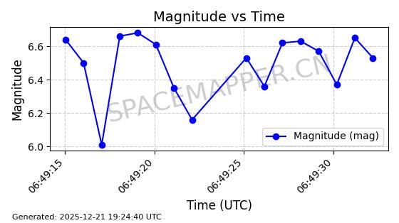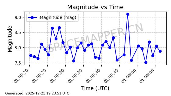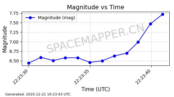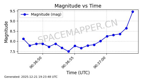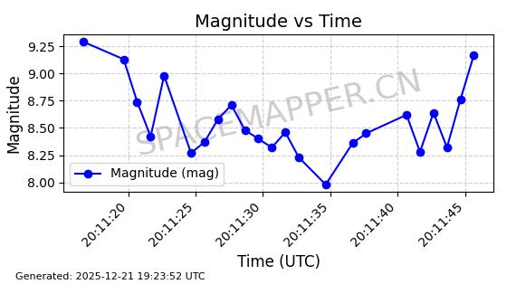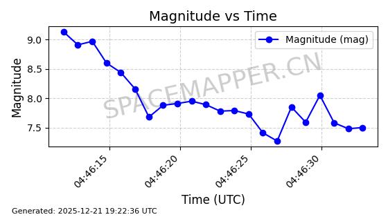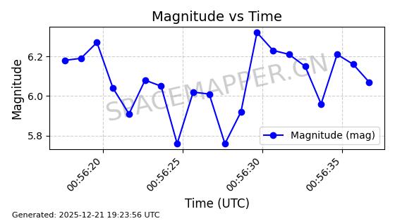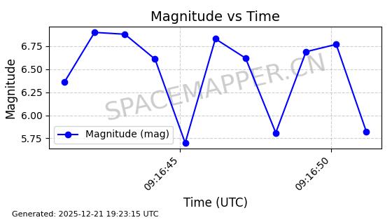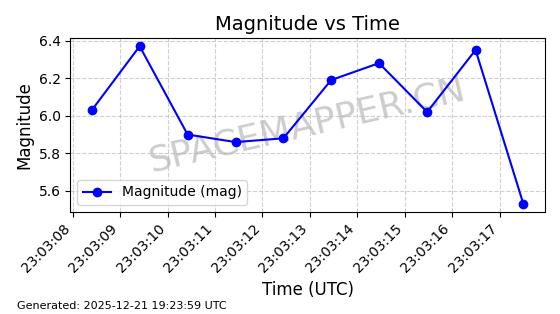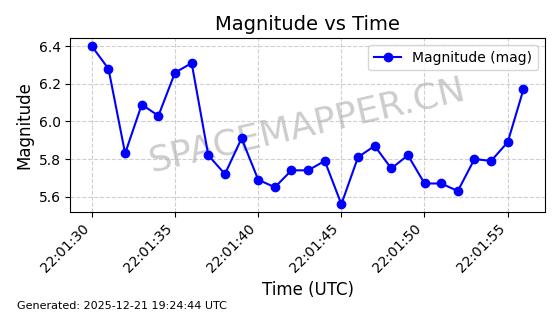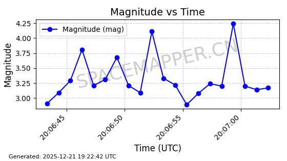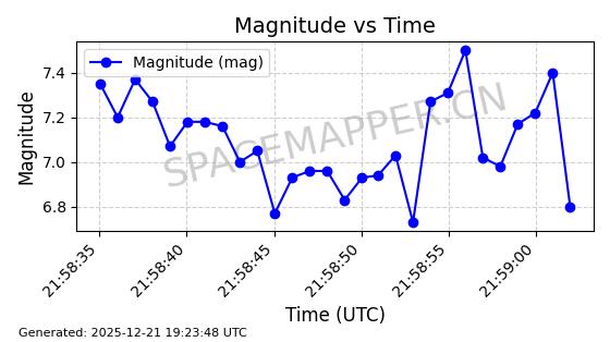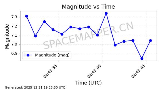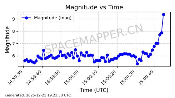 | STARLINK-6325 | 56789 | 56789 | 2023-05-31 同日期轨道 2023-078Y 同批次轨道 | 已陨落 | 88分钟 | 69.9883 | 147.542 | 159.758 | 0.0009351 | 2025-09-16 19:00:34 | ||