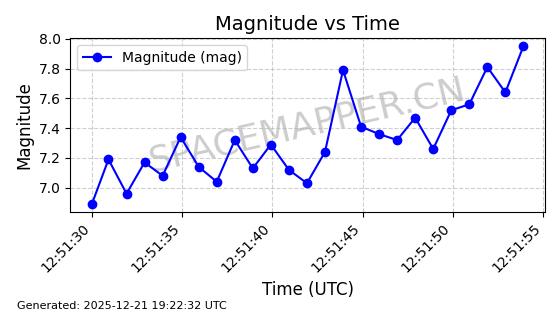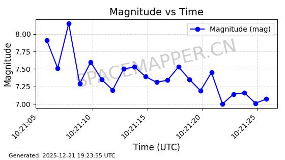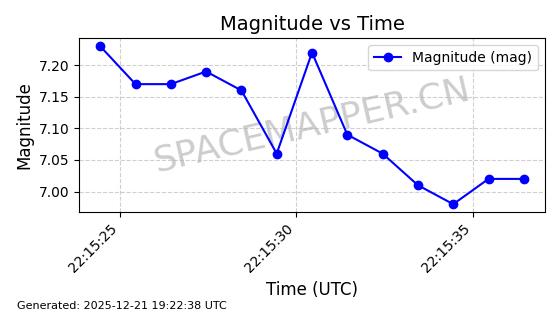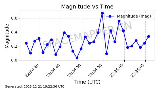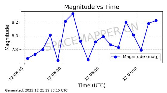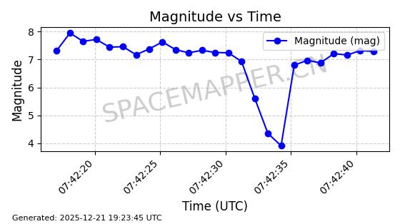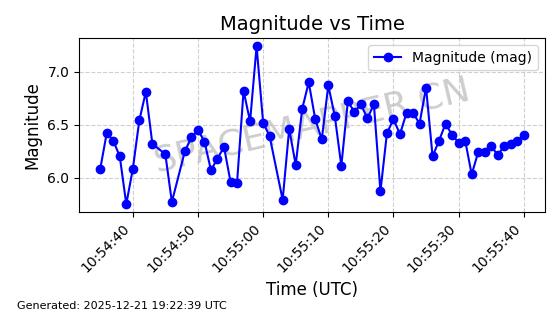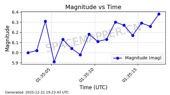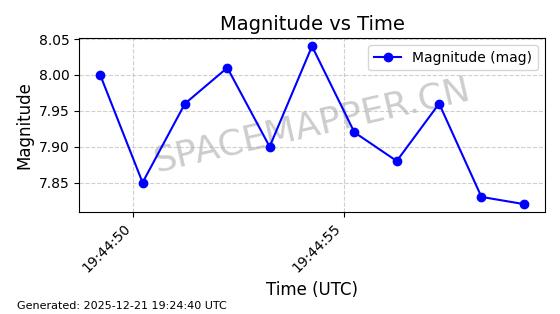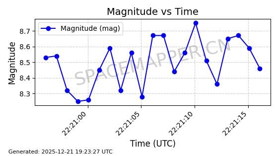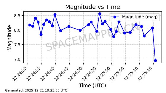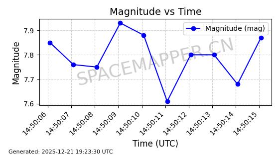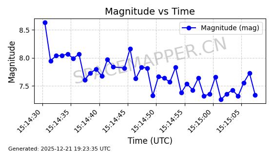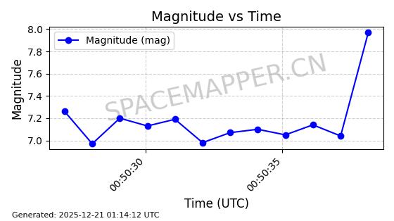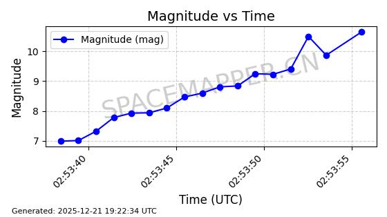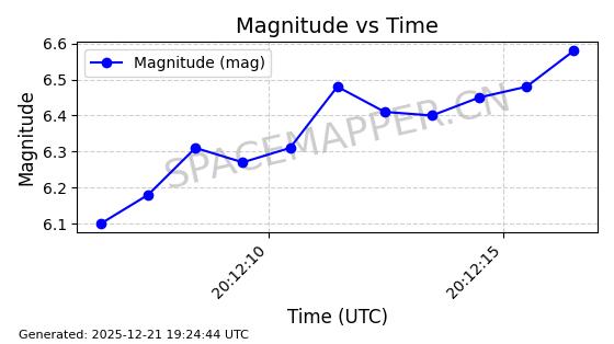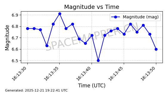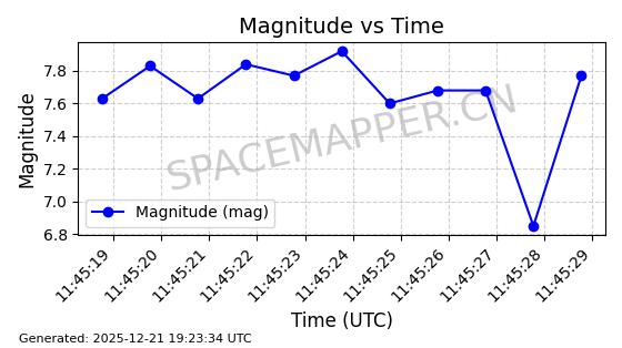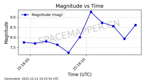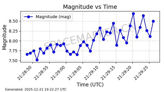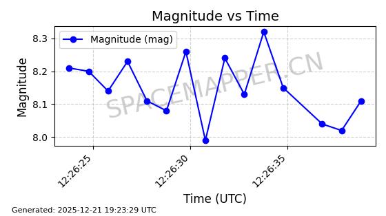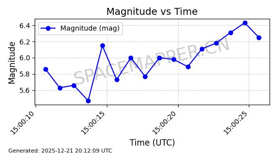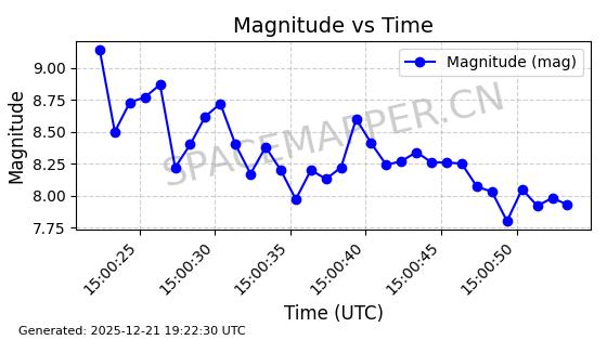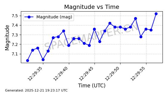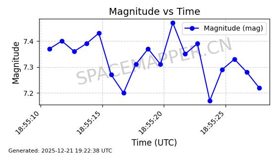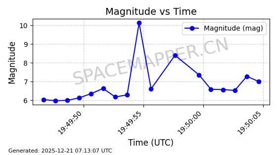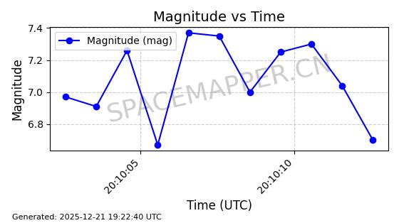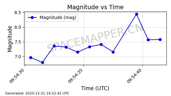 | STARLINK-6325 | 56789 | 56789 | 2023-05-31 同日期轨道 2023-078Y 同批次轨道 | 已陨落 | 88分钟 | 69.9883 | 147.542 | 159.758 | 0.0009351 | 2025-09-16 19:00:34 | ||