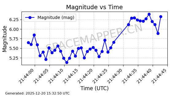 | STARLINK-6363 | 57375 | 57375 | 2023-07-16 同日期轨道 2023-099AZ 同批次轨道 | 在轨 | 96分钟 | 43.0047 | 558.233 | 559.933 | 0.0001224 | 2025-12-20 21:05:42 | ||