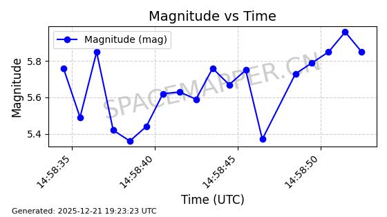 | STARLINK-6367 | 57376 | 57376 | 2023-07-16 同日期轨道 2023-099BA 同批次轨道 | 在轨 | 96分钟 | 43.0047 | 558.32 | 559.82 | 0.0001080 | 2025-12-21 03:14:13 | ||