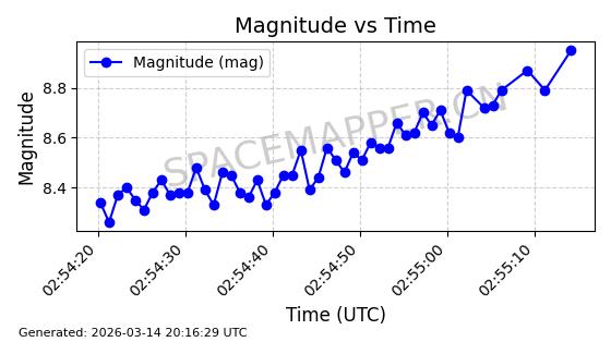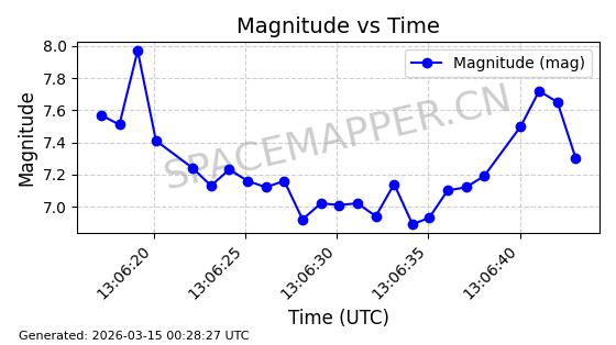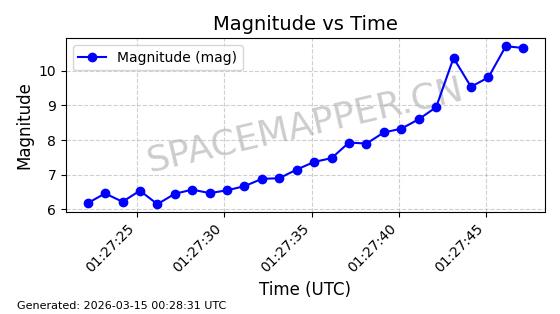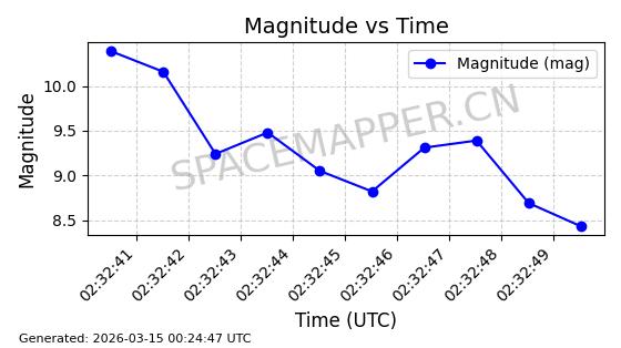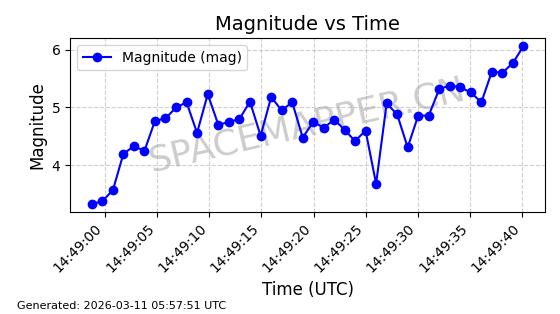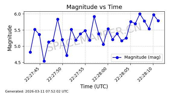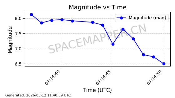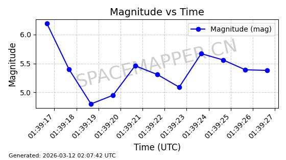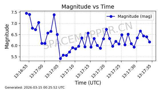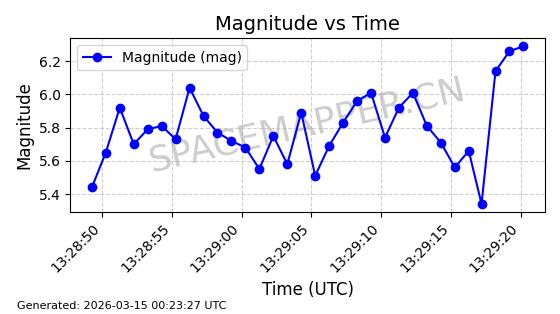 | STARLINK-32022 | 60149 | 60149 | 2024-06-27 同日期轨道 2024-120Q 同批次轨道 | 在轨 | 94分钟 | 53.1585 | 474.839 | 475.671 | 0.0000606 | 2026-03-13 21:58:01 | ||