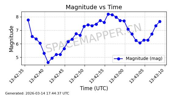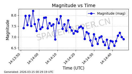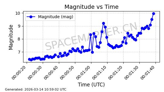 | STARLINK-32044 | 60092 | 60092 | 2024-06-23 同日期轨道 2024-117B 同批次轨道 | 在轨 | 94分钟 | 53.1617 | 474.428 | 476.032 | 0.0001170 | 2026-03-13 22:54:25 | ||