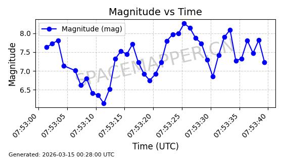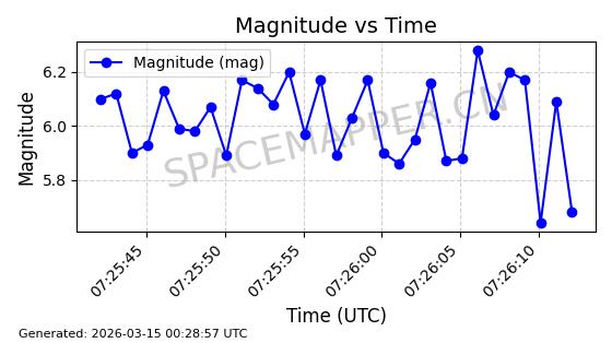 | 卫星名称 | AOE ID | NORAD ID | 发射日期 国际编号 | 在轨状态 | 轨道周期 | 轨道倾角 (度) | 近地点 (Km) | 远地点 (Km) | 偏心率 | 更新时间 (UTC) | 近期光变曲线 | 服务 |