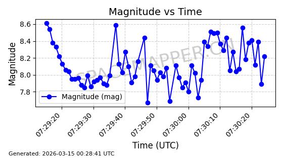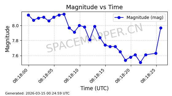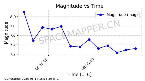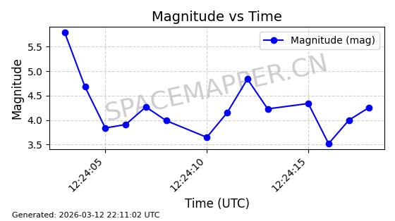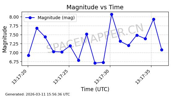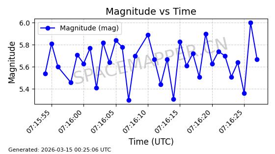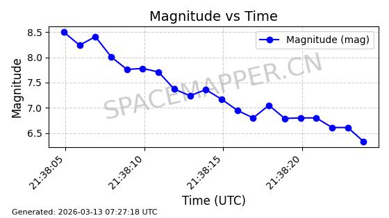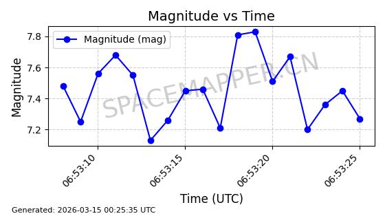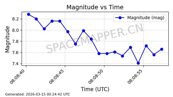| STARLINK-11160 | 60125 | 60125 | 2024-06-24 同日期轨道 2024-118N 同批次轨道 | 在轨 | 92分钟 | 53.1593 | 359.06 | 360.472 | 0.0001047 | 2026-03-13 18:06:43 | ||