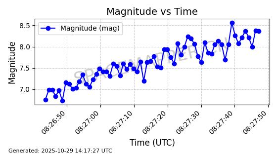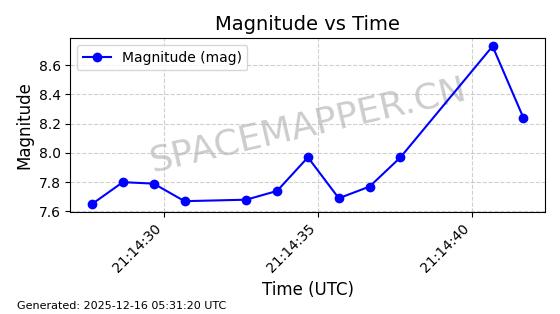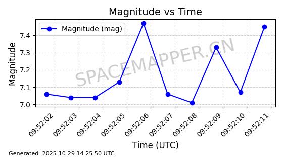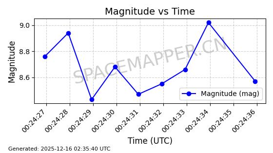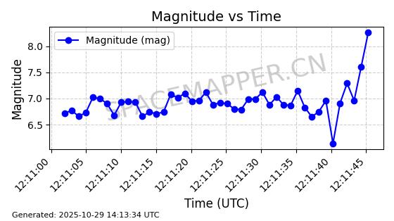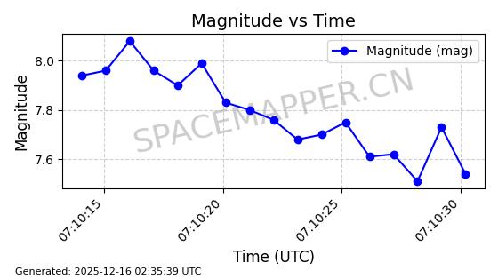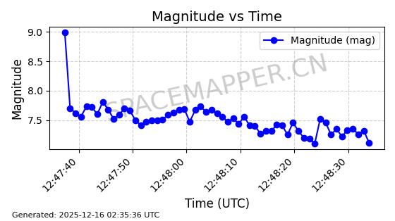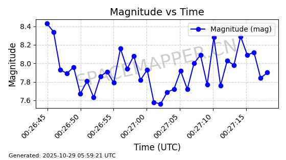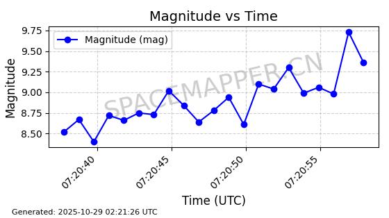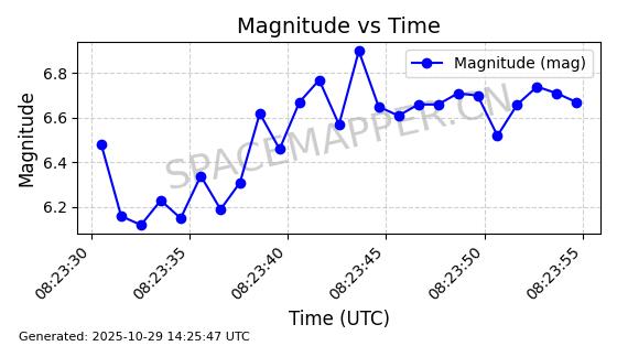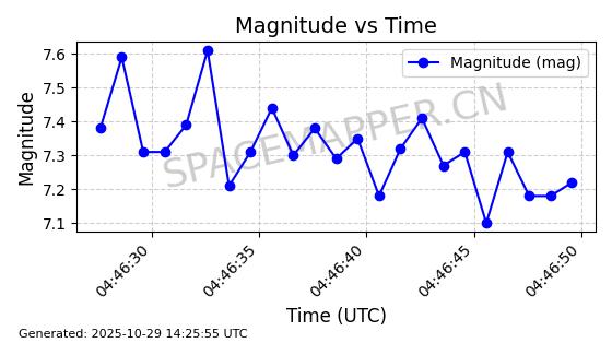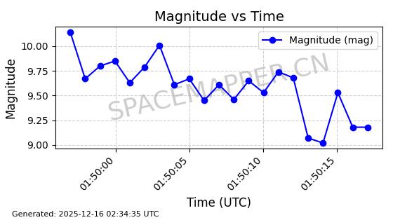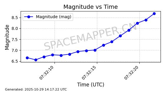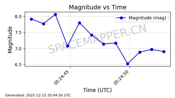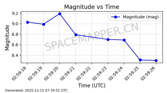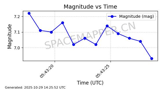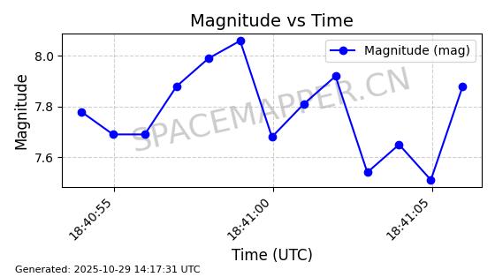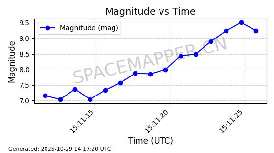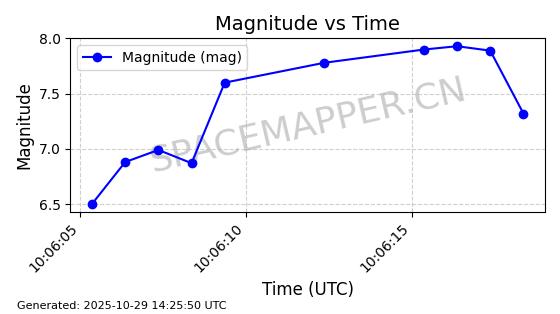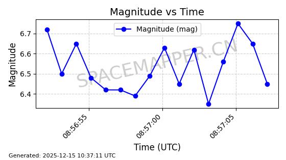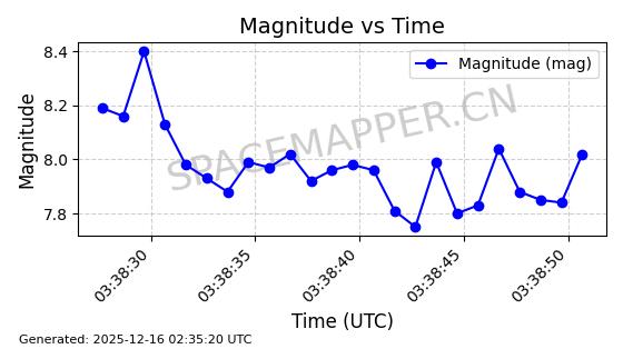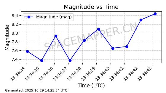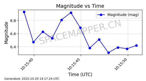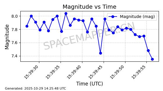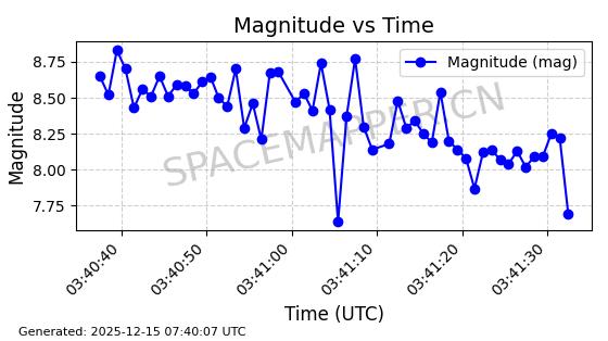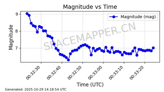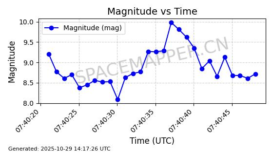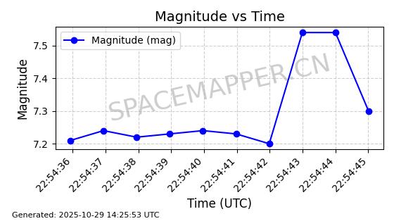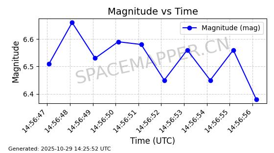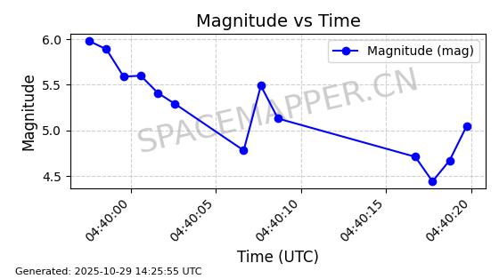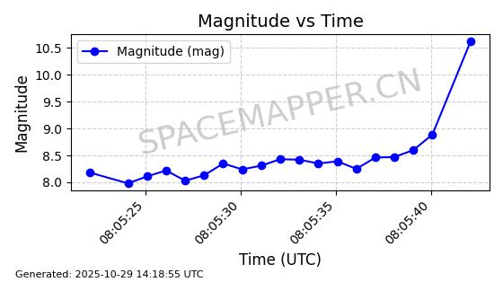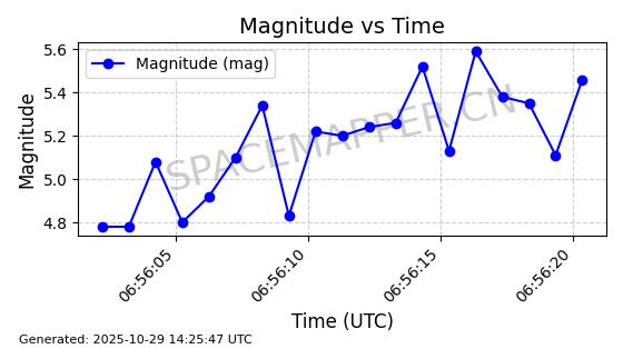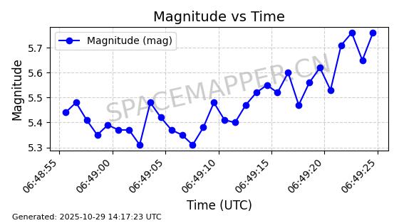| STARLINK-1503 | 45745 | 45745 | 2020-06-13 同日期轨道 2020-038R 同批次轨道 | 已陨落 | 87分钟 | 53.0230 | 141.439 | 151.783 | 0.0007926 | 2025-05-15 07:33:12 | ||