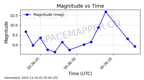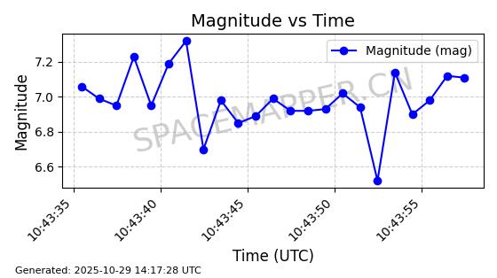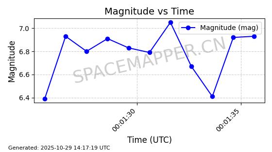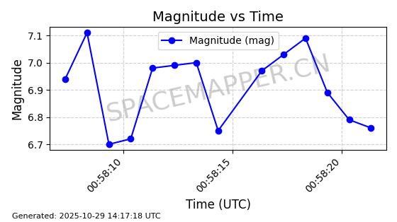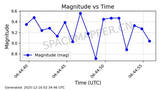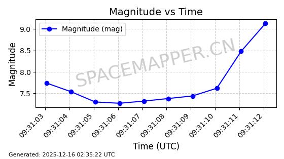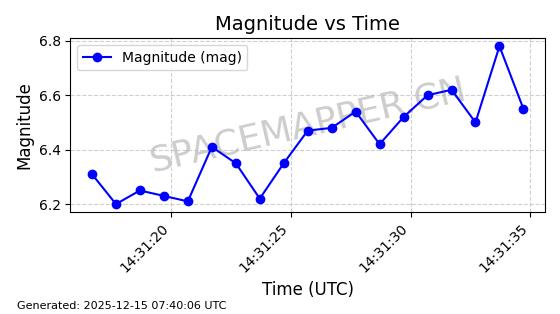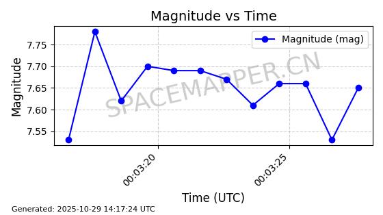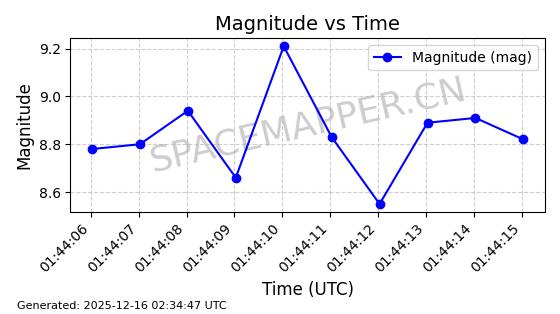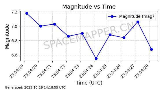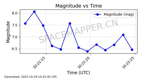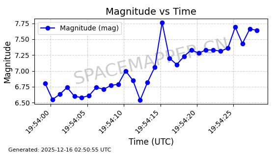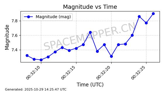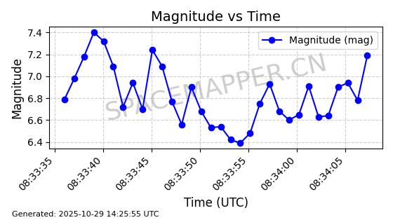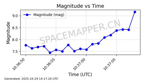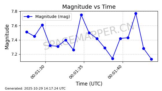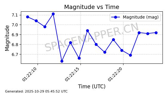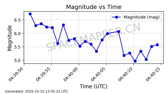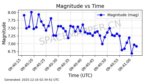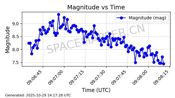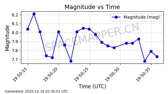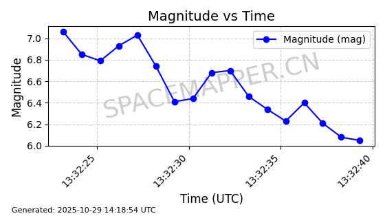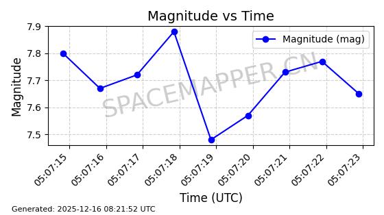 | STARLINK-1489 | 45776 | 45776 | 2020-06-13 同日期轨道 2020-038AY 同批次轨道 | 已陨落 | 87分钟 | 53.0202 | 146.195 | 148.251 | 0.0001575 | 2025-06-20 15:20:00 | ||