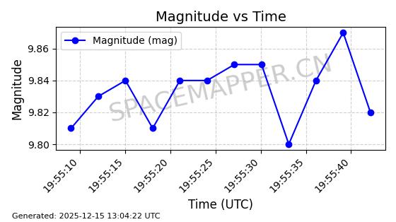 | STARLINK-1482 | 45773 | 45773 | 2020-06-13 同日期轨道 2020-038AV 同批次轨道 | 在轨 | 96分钟 | 53.0527 | 546.269 | 548.213 | 0.0001403 | 2025-12-14 22:15:30 | ||