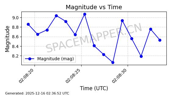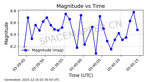 | STARLINK-1485 | 45774 | 45774 | 2020-06-13 同日期轨道 2020-038AW 同批次轨道 | 已陨落 | 87分钟 | 53.0287 | 146.961 | 151.965 | 0.0003832 | 2025-11-03 23:00:33 | ||