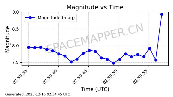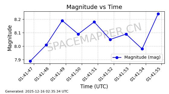 | STARLINK-1580 | 46041 | 46041 | 2020-08-07 同日期轨道 2020-055Q 同批次轨道 | 已陨落 | 89分钟 | 53.0289 | 206.012 | 225.586 | 0.0014842 | 2025-04-01 05:15:14 | ||