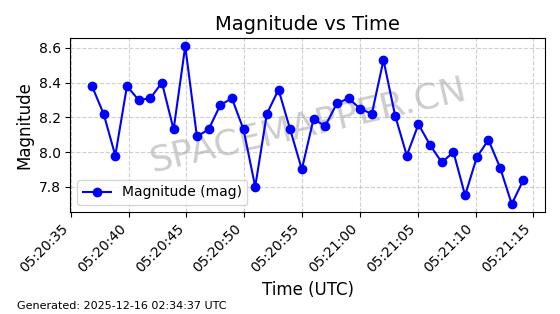 | STARLINK-1517 | 45787 | 45787 | 2020-06-13 同日期轨道 2020-038BK 同批次轨道 | 已陨落 | 88分钟 | 53.0252 | 160.861 | 167.877 | 0.0005361 | 2025-06-05 20:22:50 | ||
