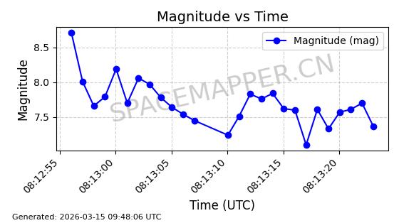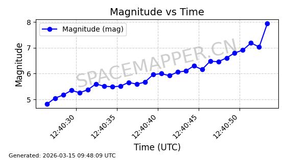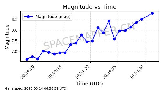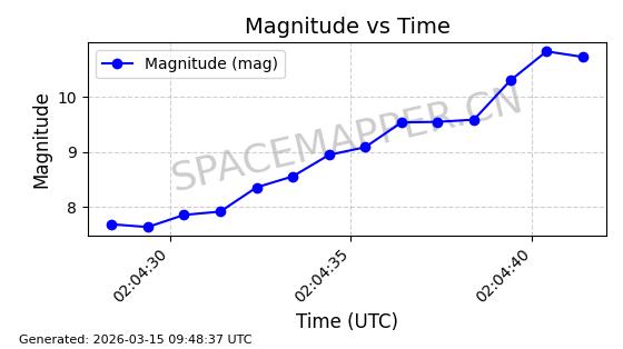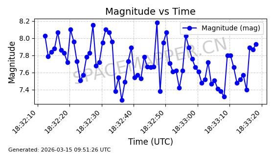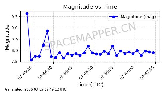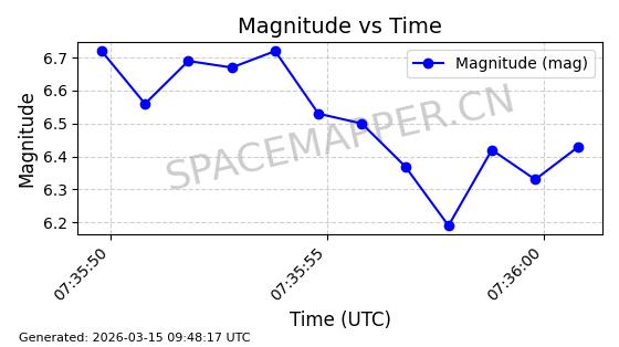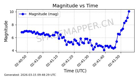 | STARLINK-32476 | 61550 | 61550 | 2024-10-15 同日期轨道 2024-184U 同批次轨道 | 在轨 | 94分钟 | 53.1610 | 474.371 | 476.157 | 0.0001303 | 2026-03-13 01:53:09 | ||