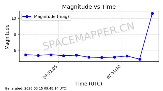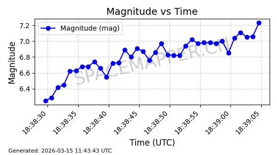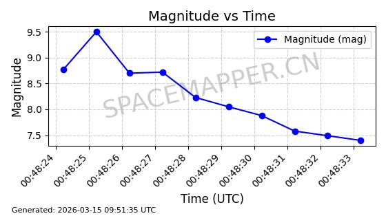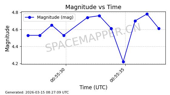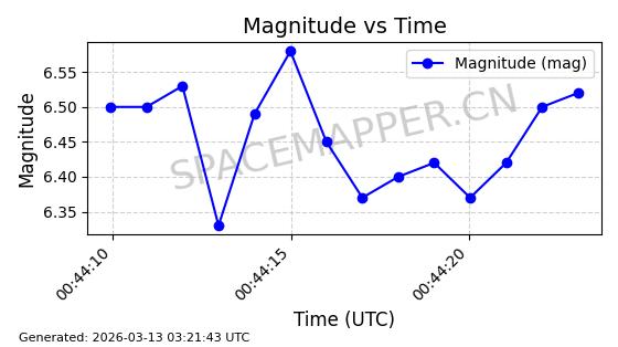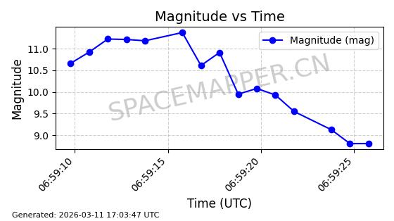 | STARLINK-11313 | 61255 | 61255 | 2024-09-25 同日期轨道 2024-175N 同批次轨道 | 在轨 | 92分钟 | 53.1589 | 358.473 | 360.791 | 0.0001719 | 2026-03-13 21:08:18 | ||