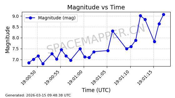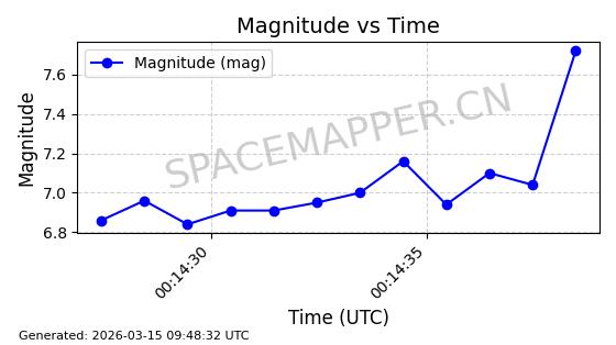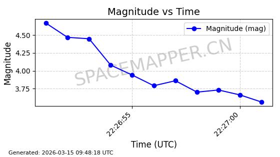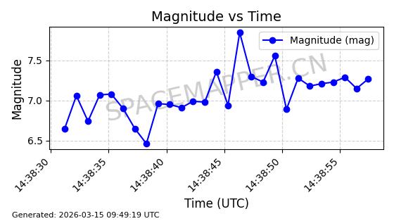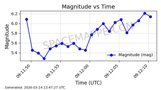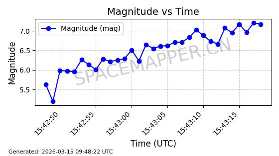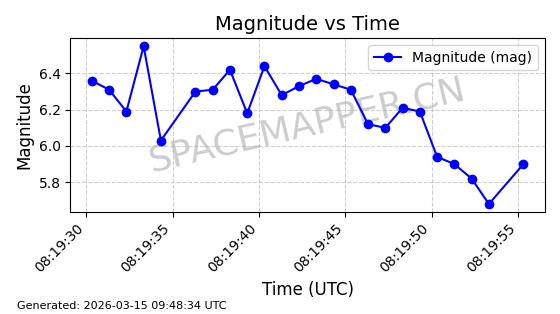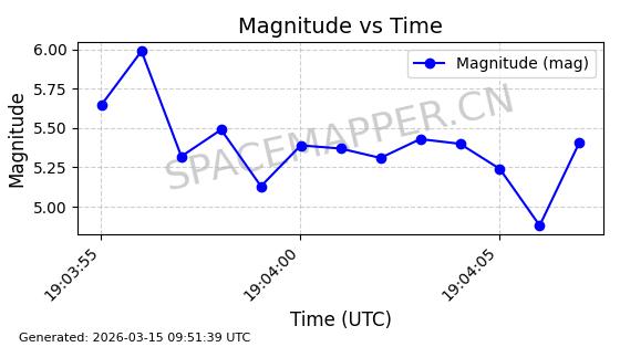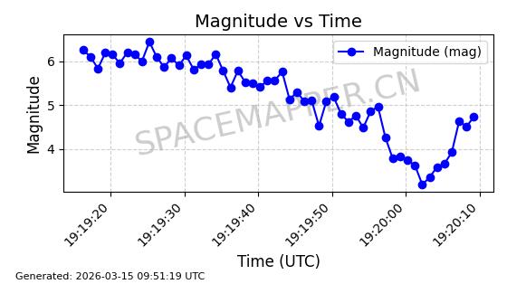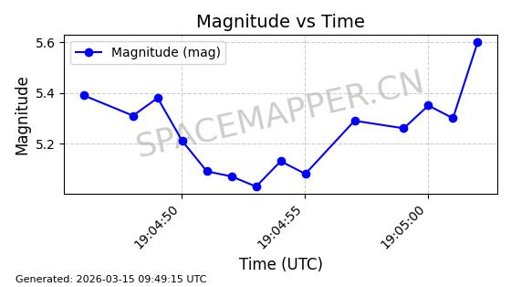 | STARLINK-32139 | 61510 | 61510 | 2024-10-15 同日期轨道 2024-183B 同批次轨道 | 在轨 | 94分钟 | 53.1611 | 474.392 | 476.092 | 0.0001240 | 2026-03-13 13:20:51 | ||