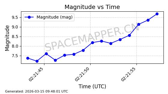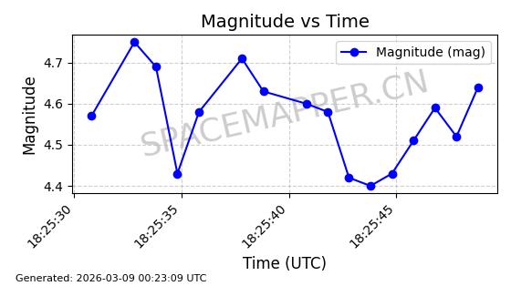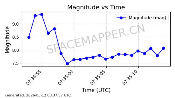 | STARLINK-32455 | 61632 | 61632 | 2024-10-23 同日期轨道 2024-191M 同批次轨道 | 在轨 | 94分钟 | 43.0040 | 482.337 | 483.813 | 0.0001075 | 2026-03-13 21:05:05 | ||